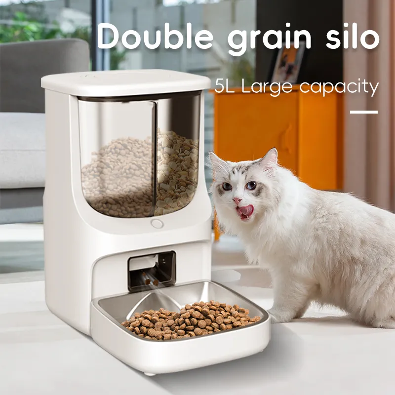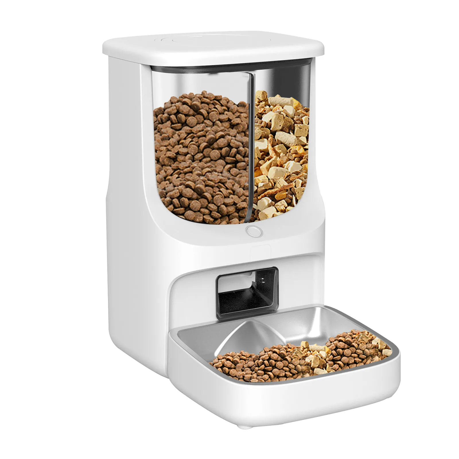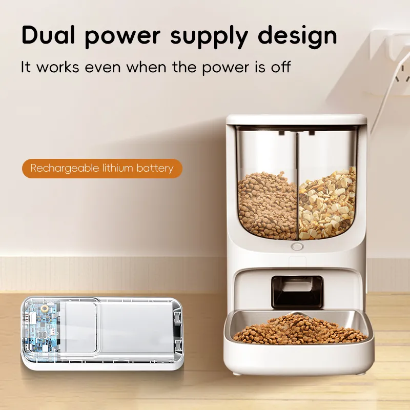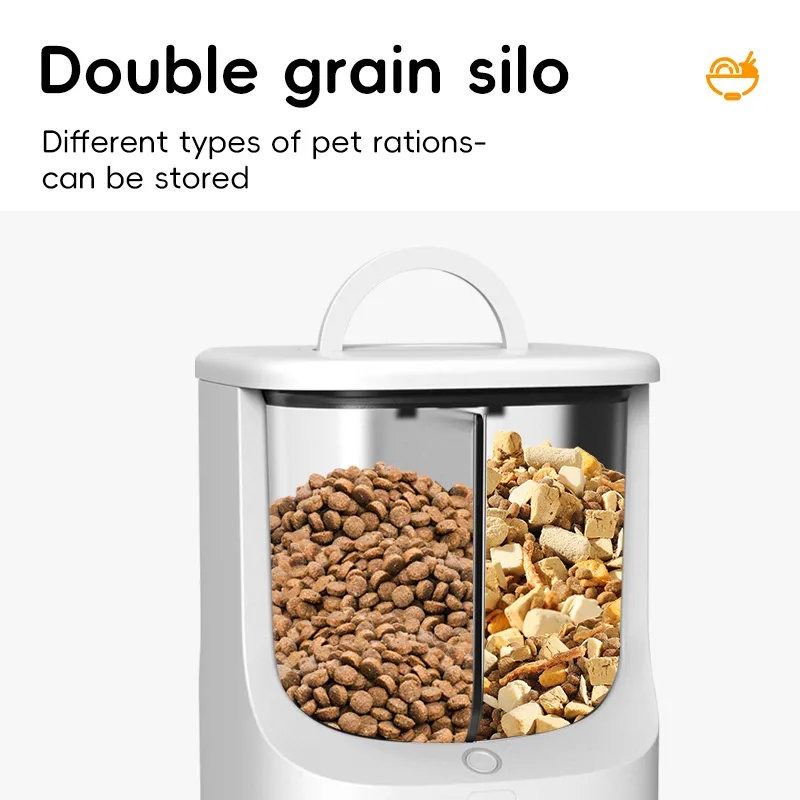 2. Dual-Bin Design for Balance. Two compartments release food evenly, perfect for dry or freeze-dried meals.